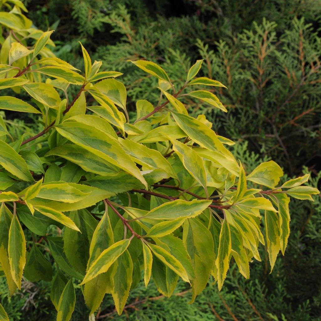 S’il est parfois confondu avec l’Abeliophyllum distichum et son cultivar ‘Roseum’ ou forsythia rouge de Corée, le forsythia demeure, malgré les hybridations, un arbuste à floraison jaune. Le feuillage du forsythia généralement caduc se révèle aussi spectaculaire que la floraison chez certaines espèces, avec des feuilles panachées de jaune, de vert ou de crème. Sa silhouette dressée et gracieuse et sa taille modérée permettent de nombreuses utilisations dans tous les jardins, des plus naturalistes aux plus sauvages, même les plus modestes.