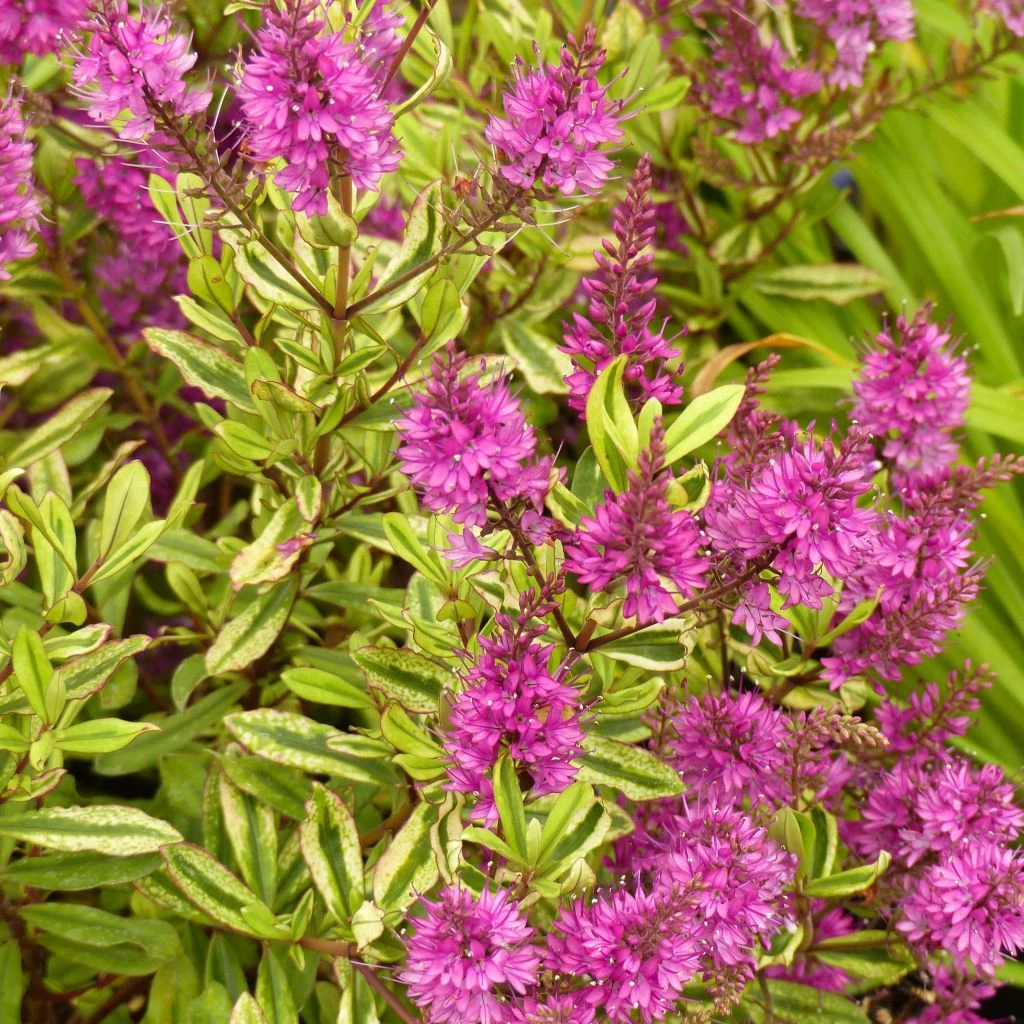 Les Hebe de la série « Wiri » ont été sélectionnées au sein du Auckland Regional Botanic Gardens pour leur bonne résistance aux maladies du feuillage, sévissant souvent en climat humide et leur assez bonne résistance au froid de l’ordre de -10°C. Mais en climat frais, optez pour une valeur sûre comme la grande Hebe Midsummer Beauty, qui forme un bel arbuste jusqu’à 1,20 m, livrant des fleurs bleu-lavande durant tout l’été et qui mérite une place dans la plupart des jardins. est une nouvelle variété irlandaise tout aussi robuste et adaptée à la culture en pot en raison de sa forme compacte de 50 cm et sa tolérance à -12°C. Son feuillage vert foncé pourpré disparaît tout l’été sous une profusion d’épis de 5 cm, rose framboise lavé de blanc.